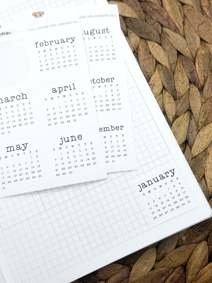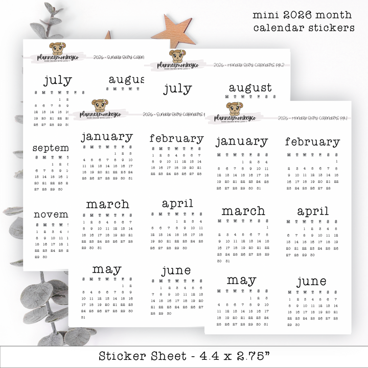 2026 Mini Monthly Calendar Stickers (2pg)