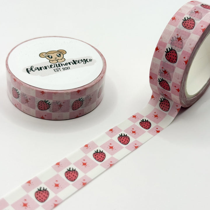 Gingham Strawberry Picnic Washi Tape | 15MM