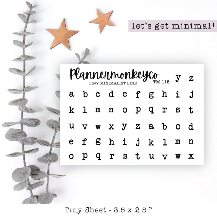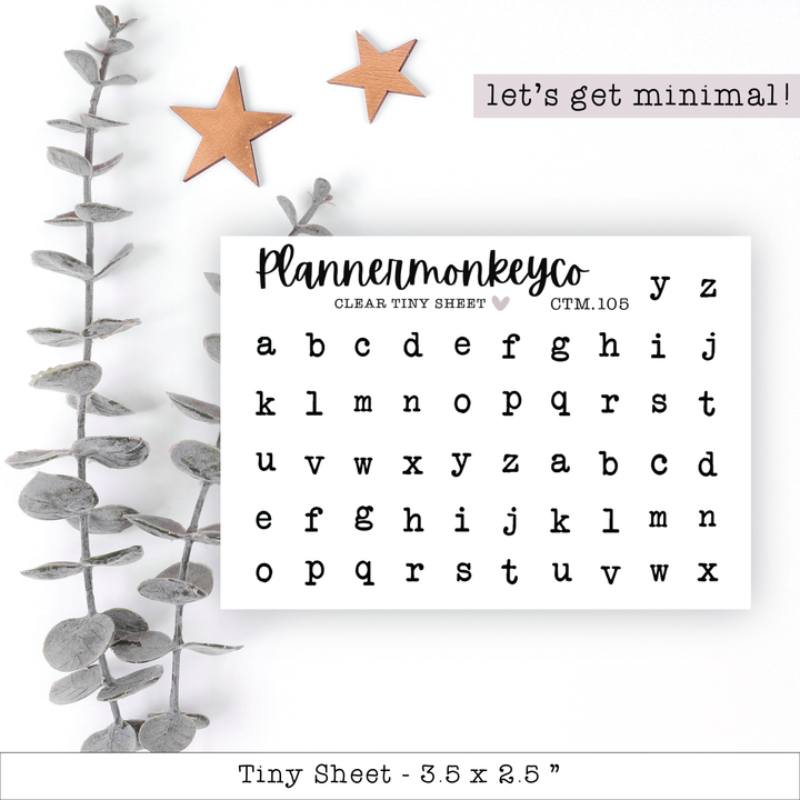 Minimal White Typewriter Alpha Letter Stickers - Tiny Sheet