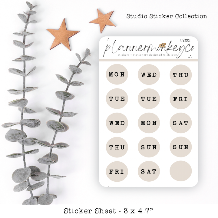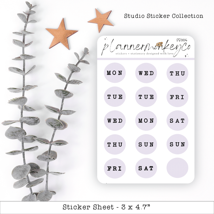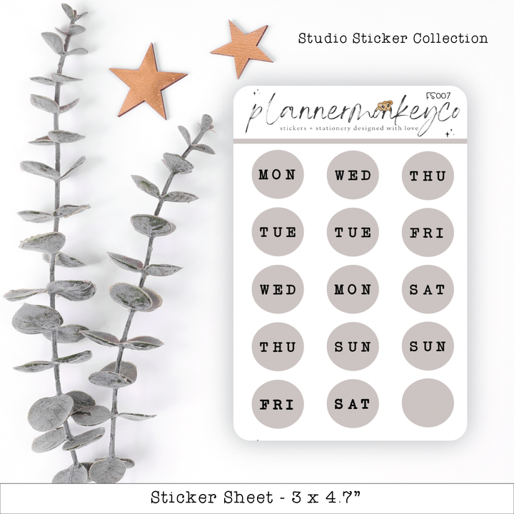 Typewriter Days Of The Week Stickers (VOL.1) | Studio Sticker Collection | Regular Matte